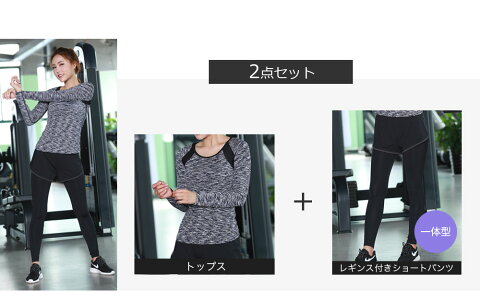 ITEM INFORMATION スポーツウェア2点セット セット内容 ・長袖トップス・レギンス付ショートパンツ 用途 ランニング・ヨガ(ホットヨガ)・自転車・ジム・ルームウエアなど様々なシーンでご利用いただけます。
